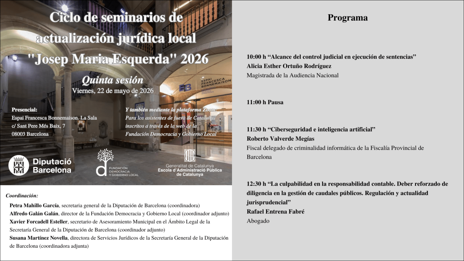Ciclo de seminarios de actualización jurídica local Josep Maria Esquerda 2026 Quinta sesión